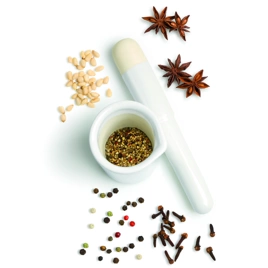 ( ilość produktów: 3 )Kuchnia to przede wszystkim smaki i zapachy. Do wielu dań musimy rozdrabniać zioła czy inne przyprawy. Najlepszymi pomocnikami są w tym moździerze kamienne lub ceramiczne... Jest to niby sprzęt archaiczny, a jednak wciąż uwielbiany. W ofercie naszego sklepu znajdziesz solidne i trwałe moździerze kuchenne. Ich uniwersalny wygląd sprawia, że pasują do każdej kuchni, bez względu na to w jakim klimacie jest ona urządzona. Moździerze umożliwiają skomponowanie własnej mieszanki przypraw. Są niezbędne wszędzie tam, gdzie przygotowywane są dania kuchni orientalnych. W naszych moździerzach rozetrzesz również tak prozaiczne artykuły jak cukier, gdy potrzebujesz niewielkiej ilości cukru pudru, sól - gdy potrzebujesz soli drobnoziarnistej i wielu innych produktów spożywczych.