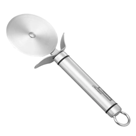 ( ilość produktów: 5 )Trudno znaleźć kogoś, kto nie lubiłby pizzy. Jej przygotowanie najlepiej zacząć od dobrego przepisu na ciasto do pizzy. Następnie warto zaopatrzyć się w odpowiednią blachę do pieczenia pizzy. Ostatnia rzecz jakiej będziesz potrzebował to dobrej jakości nóż do krojenia pizzy. Z ich pomocą łatwo pokroić ulubioną pizzę na takie kawałki, jakie się chce, szybko i precyzyjnie. Oferujemy różne noże i kółka krojące, dostosowane do rożnych rodzajów i grubości pizzy. Naszą ofertę otwiera prosty nóż do pizzy, przeznaczony zwłaszcza do krojenia ciasta, znajdującego się na blachach do pieczenia. Nie uszkadza on większości powłok blach, a pizza jest szybko krojona na części. Można go łatwo umyć ręcznie bądź w zmywarce. Odpowiednio używane, będą niezawodnie służyć w każdej sytuacji.