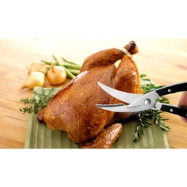 ( ilość produktów: 4 )Drób jest jednym z chętniej jadanych mięs w Polsce. Kurczaki od dawna królują na stołach, a coraz częściej wraca się do tak wspaniałych w smaku kaczek czy gęsi, a także indyka. Problem pojawia się w momencie, gdy chcemy pięknie, a jednocześnie bez większego wysiłku pokroić drób. Wtedy niezbędne okazują się nożyce do drobiu. Gdy choć raz spróbujecie pokroić drób nożycami, już nigdy nie będziecie tego robić nożem. Ostrza nożyc do cięcia drobiu są wykonane z dobrej jakościowo stali. Ostre i wytrzymałe bez problemu poradzą sobie z drobiowymi kośćmi. Rączki mogą być metalowe lub plastikowe w różnych kolorach, które można dopasować do wystroju stołu. Dzięki temu nożyce do drobiu mogą być nie tylko użyteczne, ale stanowić piękne uzupełnienie stołowej zastawy. Krojenie drobiu przy pomocy nożyc jest łatwe i przyjemne. Można tę czynność wykonywać na oczach zachwyconych biesiadników, zyskując ich uznanie dla naszej kulinarnej sztuki.