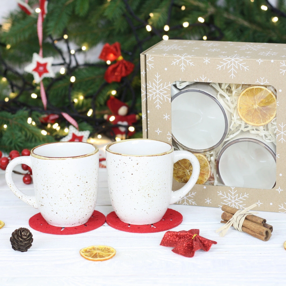 Zestaw dopełnia pudełko prezentowe z wełną drzewną, które nie tylko chroni kubki, ale także sprawia, że całość prezentuje się elegancko i luksusowo. Dzięki temu zestaw jest gotowy do wręczenia bez potrzeby dodatkowego pakowania – wystarczy podarować go bliskiej osobie. To doskonały prezent dla pary na święta, który zachwyci zarówno designem, jak i funkcjonalnością.