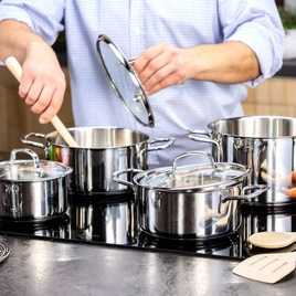 Komplet czterech garnków indukcyjnych w zestawie z szklanymi pokrywami TESCOMA OPTIMA